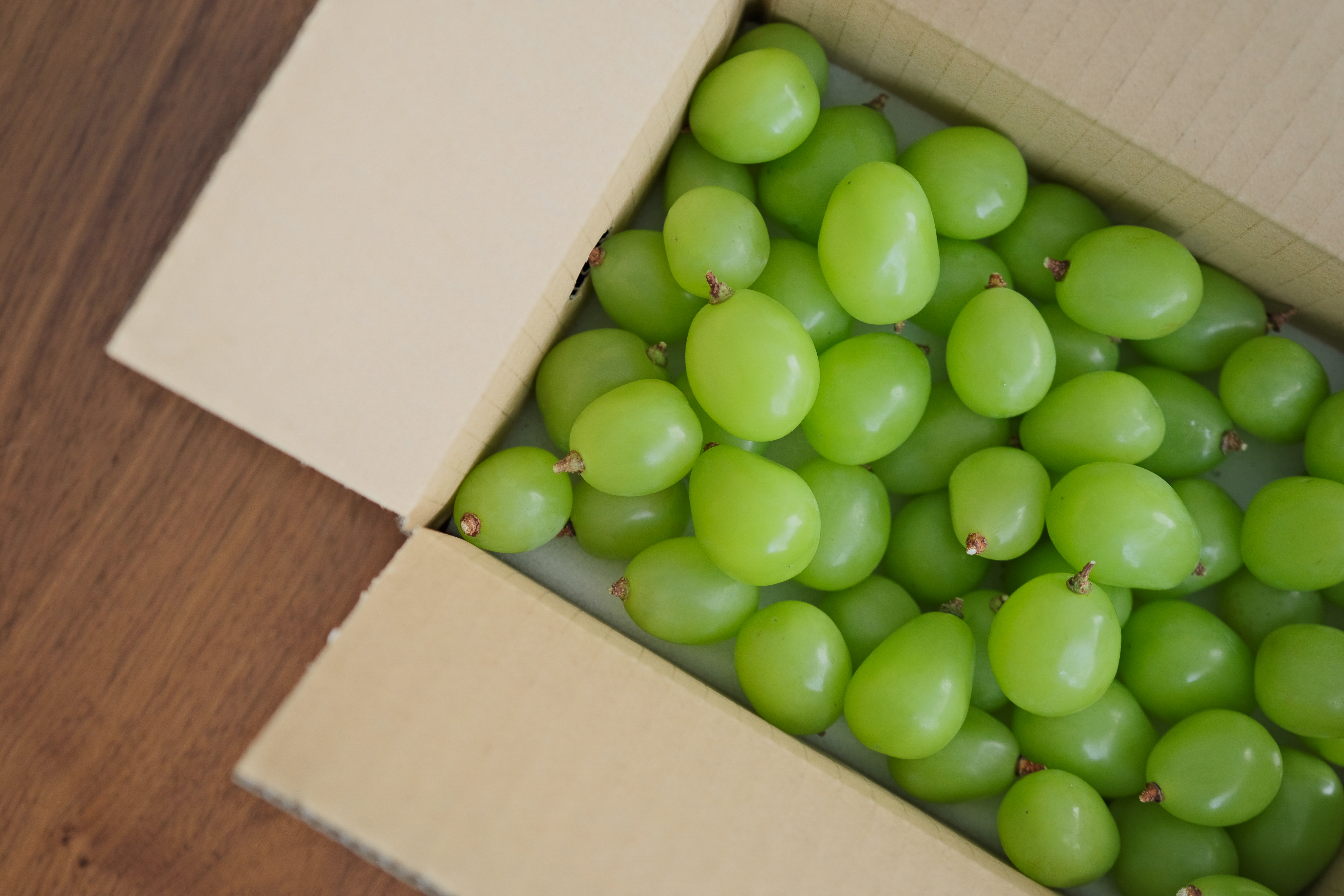 こちらのたっぷり粒詰めシャインマスカットは、房ではなく粒でお届けしています。